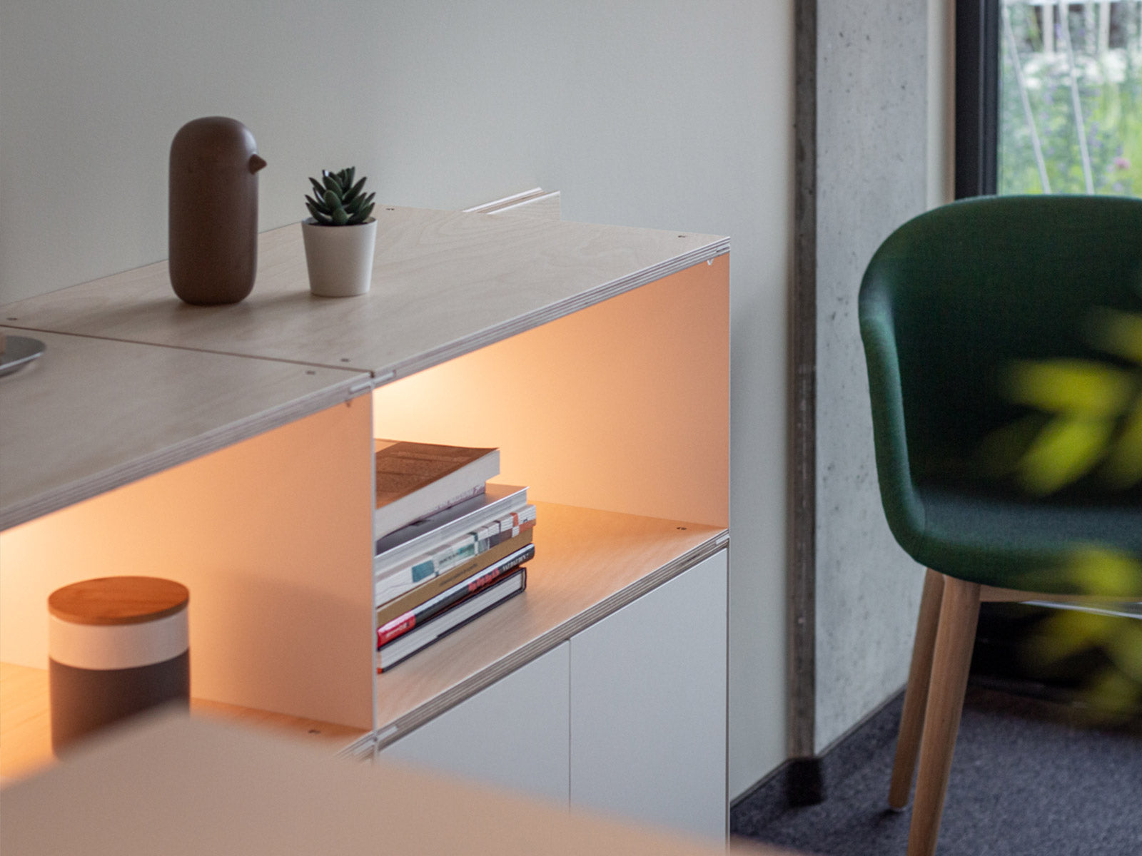 Genug Stauraum dafür bietet das modulare Variand-Regal, das schnell und ohne Werkzeug aufgebaut und jederzeit verändert werden kann.