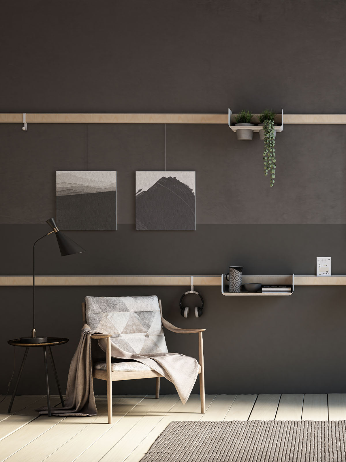 Noch mehr Möglichkeiten der Gestaltung bieten die Wandleisten mit integrierter Bilderschiene. So vermeidest du zusätzliche Löcher in der Wand und das Aufhängen von Bilderrahmen wird zum Kinderspiel.
