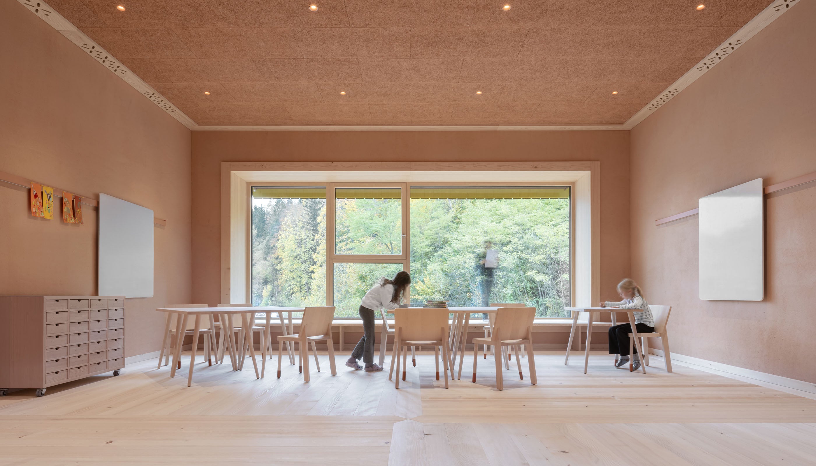 Spezielle Variand-Wandleisten und neu entwickelte Whiteboards im Bildungszentrum Kössen. Ein Schulprojekt, das Architektur, Funktion und langlebige Möbellösungen verbindet.