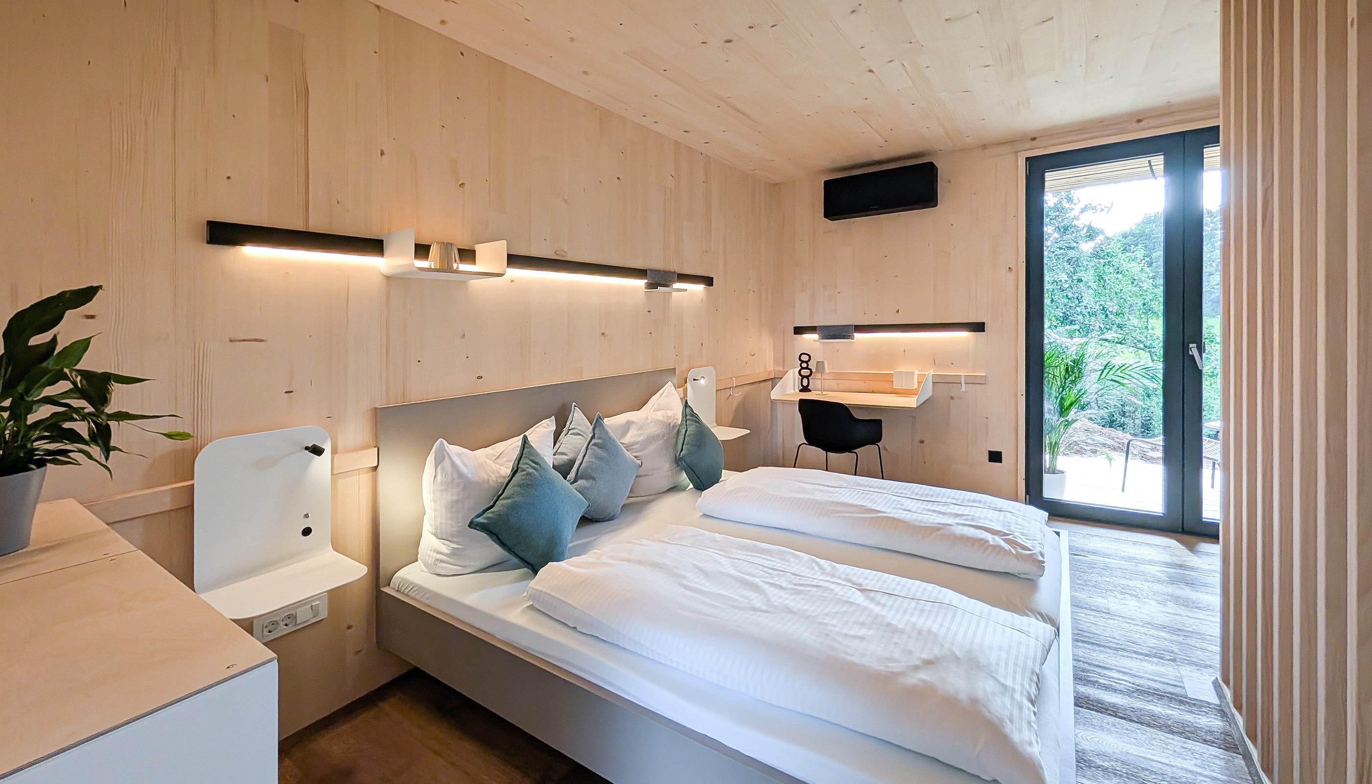 Am Mattsee in Österreich wurden 42 Modulhäuser für das Öko-Resort "das Seehäuser" mit dem Variand-System eingerichtet und so ein wohnliches und flexibles Einrichtungskonzept geschaffen.