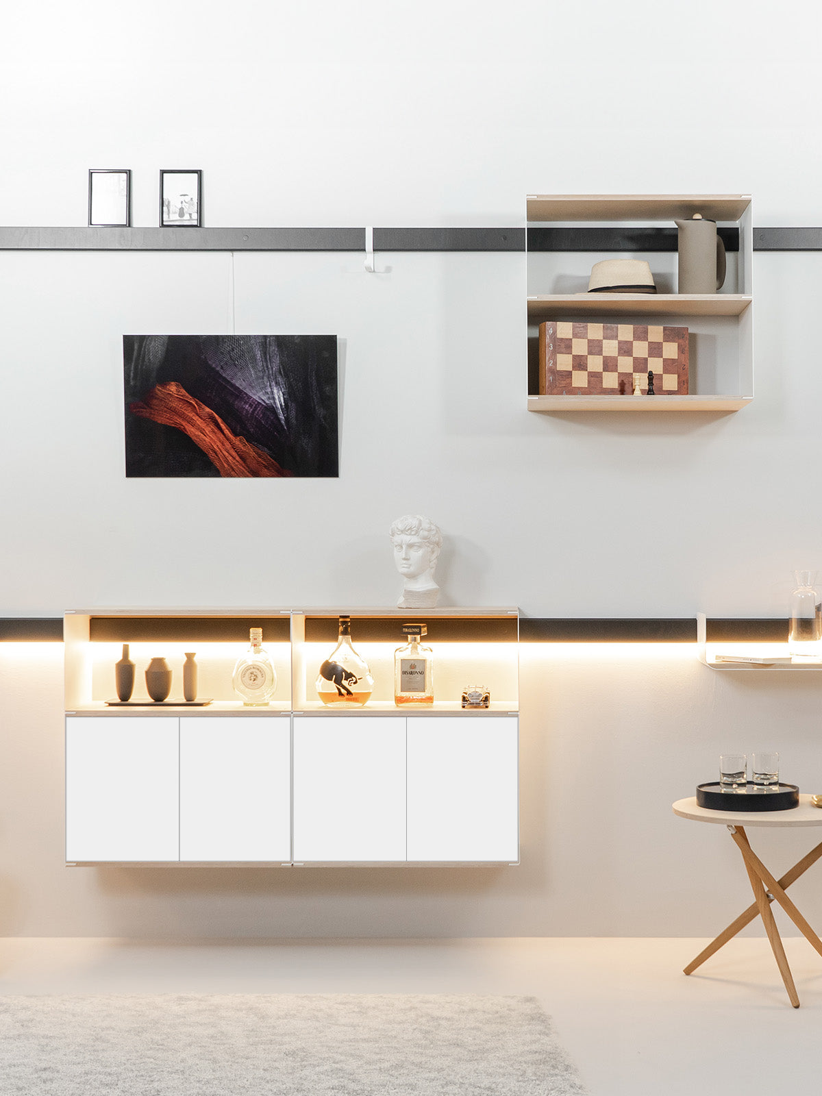 Grazie alla sua versatilità e alla possibilità di personalizzare facilmente la disposizione, puoi configurare e adattare la tua parete ai tuoi desideri.